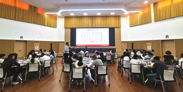本次培訓(xùn)邀請平安養(yǎng)老保險安徽分公司黨委書記、總經(jīng)理、平安大學(xué)特聘專家級講師胡維濤進(jìn)行授課。課程以“高效團(tuán)隊建設(shè)與管理相關(guān)知識”為主題,從提高管理賦能的角度出發(fā),在業(yè)績目標(biāo)分解、激發(fā)團(tuán)隊潛能、提高執(zhí)行力、強(qiáng)化績效考核、團(tuán)隊矛盾處理以及凝聚優(yōu)秀人才等方面進(jìn)行了深入淺出的講解。通過案例分析、場景測評等方式,胡維濤分享了在團(tuán)隊建設(shè)與管理領(lǐng)域豐富的實(shí)操經(jīng)驗(yàn),并與大家探討如何結(jié)合實(shí)際加強(qiáng)團(tuán)隊建設(shè),提升團(tuán)隊管理水平。